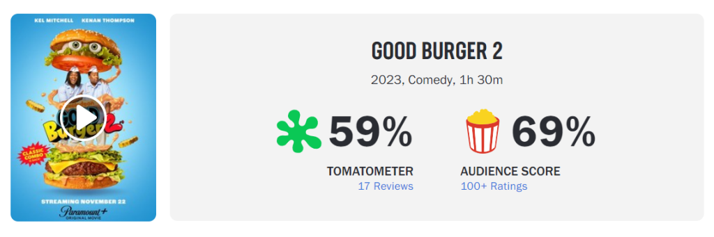A Guerra do Hamburguer 2 já foi visto pelo tribunal do Rotten Tomatos e ele foi aprovado com sabor! De acordo com o veredito final, a continuação recebeu 80% de aprovação e os apontamentos são de um filme que mantem o tom do original e destaca o talento da dupla principal: Kenan Thompson e Kel Mitchell.