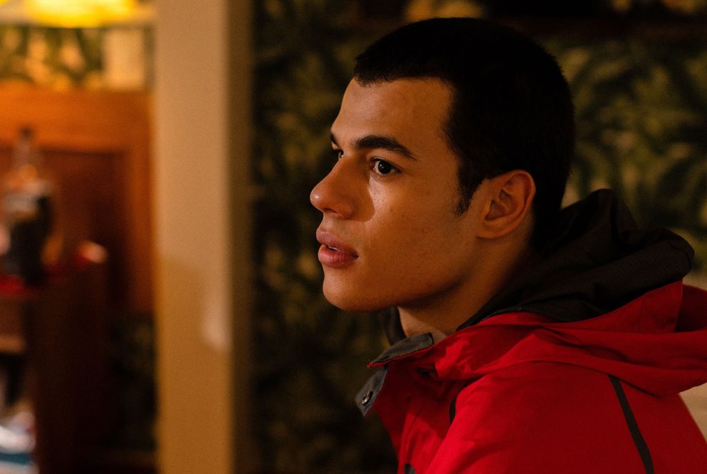 Sobre o elenco, todex estão de parabéns! O nosso protagonista, o João Pedro Caetano, ele consegue mostrar todas as camadas do Wellington e evoluir o personagem até o seu estágio final no fim do filme. Agora, quem se destaca de fato, é o Rodrigo Teodoro que faz o Ronaldo, um personagem ponte que é mais usado para avançar a trajetória do Wellington, mas que ao mesmo tempo, também entrega uma desenvolvimento e uma carga dramática para o personagem, que você quer acompanhar um desfecho positivo para ele. Agora, indo para a participação da Bruna Linzmayer, podemos dizer que ela foi muito mal aproveitada, assim como a Bianca Comparato em No Nosso Sangue. Mas as duas cenas em que ela aparece, ela dá o seu brilho para a história