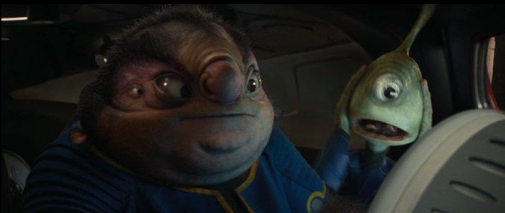 Sobre os efeitos visuais, que foram trabalhados a sete chaves desde o início da produção do filme lá em 2019 e que tiveram um aprimoramento durante a pandemia, estão SENSACIONAIS! O Stitch em si está a coisa mais fofa que você vai ver na sua vida. E a mudança de personalidade dele, onde sai a violência e entra o infantilismo misturado com a fofura sem igual dele, só deixa o personagem muito mais legal do que ele já era em 2002. Sobre os alienígenas, que era um dos grandes medos dos fãs, os efeitos também ficaram bons, especialmente na Grande Conselheira (Hannah Waddingham), no Jumba e no Pickley (Billy Mangussen), que aqui, adotam um aspecto mais de criaturas marinhas misturadas com o corpo dos caramujos. Só que esse ponto postivo, toma certos ares de negativo, justamente pelo fato da Disney querer esconder os aliens e não ter que aumentar o custo do filme que a essa altura, já estava atingindo o teto dos US$ 100 milhões.