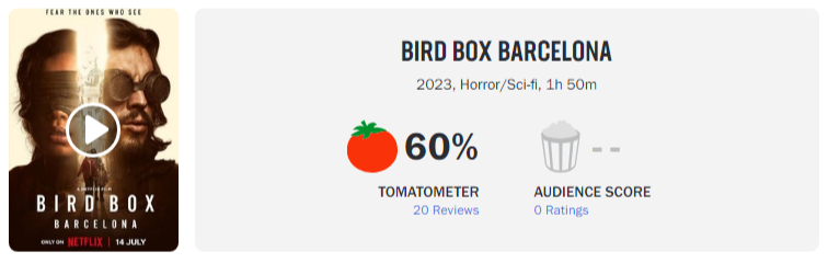 Bird Box: Barcelona estreia nesta semana na Netflix. E o filme, já foi conferido pela crítica especializada, que deu a sua opinião no Rotten Tomatos.
