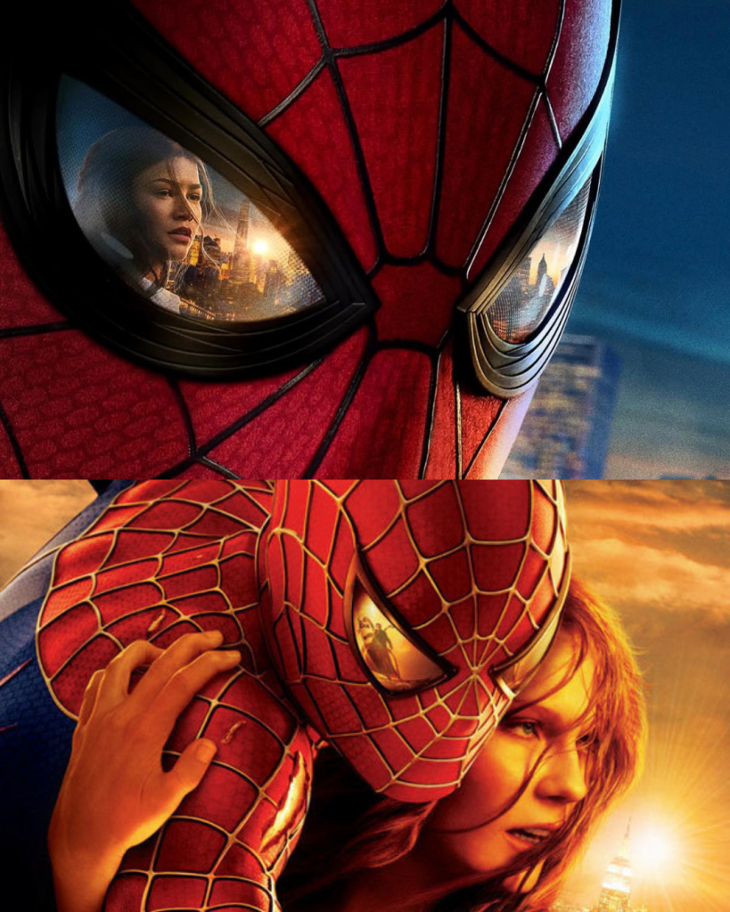 Logo depois, dois belíssimos pôsteres do filme foram divulgados, sendo o segundo com uma bela referência ao pôster clássico de Homem-Aranha 2 do Sam Raimi.