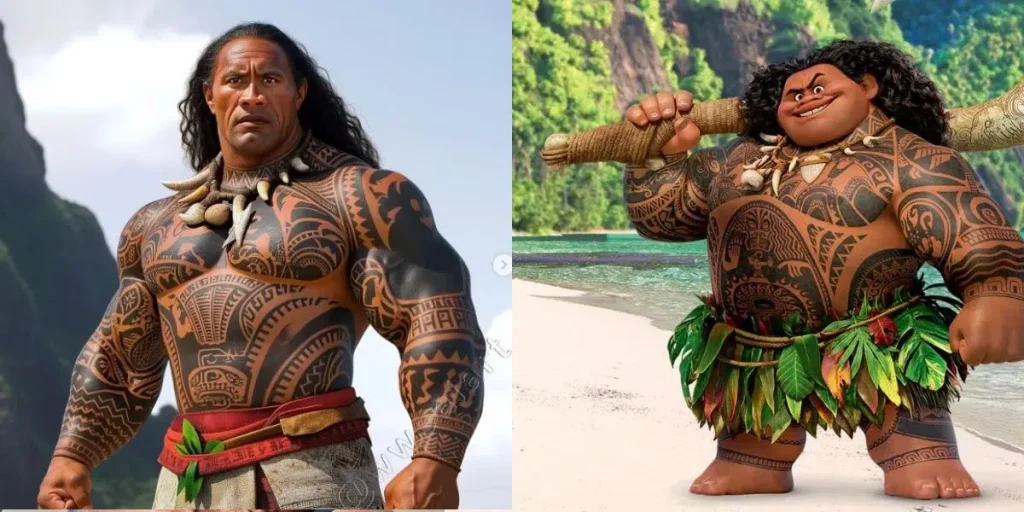 TÁ BOM? Dawayne Johnson aparece caracterizado como Mauí nos bastidores do live-action de Moana
