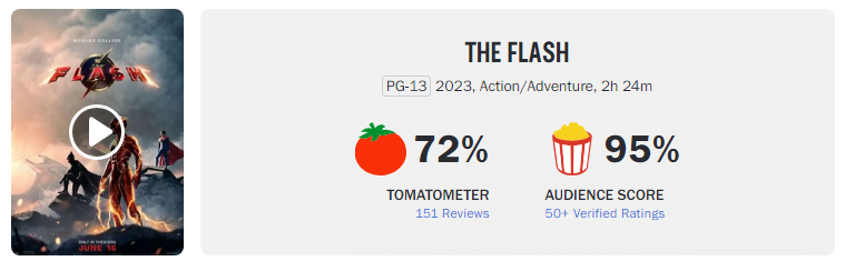 The Flash é a grande estreia dessa semana nos cinemas. E no Rotten Tomatos, o longa começou super bem e conseguiu se tornar o terceiro longa da DC mais rentável dentro do site avaliador.